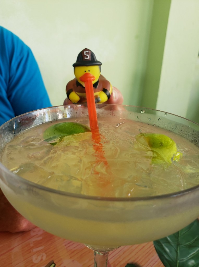 While we were sitting at the table eating fries and having a drink, the people seated next to us say our duck and gave us one that they had been going to hide when they got back on the ship!