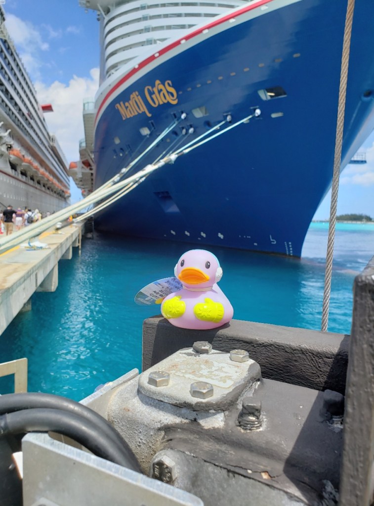 My husband and I just got back from vacation. We were on the Carnival Mardi Gras cruising to Puerto Rico, Amber Cove, and Grand Turk. We had a FUN-tastic time! The strangest thing happened… and I had never heard of this but apparently, it is a BIG thing right now…we found a duck hidden by the stairwell on the 9th floor of the ship. My husband picked it up and thought someone had lost it until he read the tag!